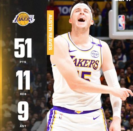前两场比赛,东契奇分别轰下43分和49分,打出湖人近些年来的强势开赛季表现;而这场比赛轮到里夫斯接棒,打出职业生涯新高51分,成为继科比之后,再度写入队史纪录的人。