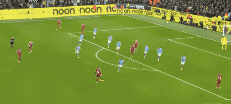 第39分钟,范迪克头球破门,但罗伯逊越位位置干扰门将,比分还是1-0。上半场补时阶段,尼科·冈萨雷斯的射门被范迪克挡了一下变向破门。